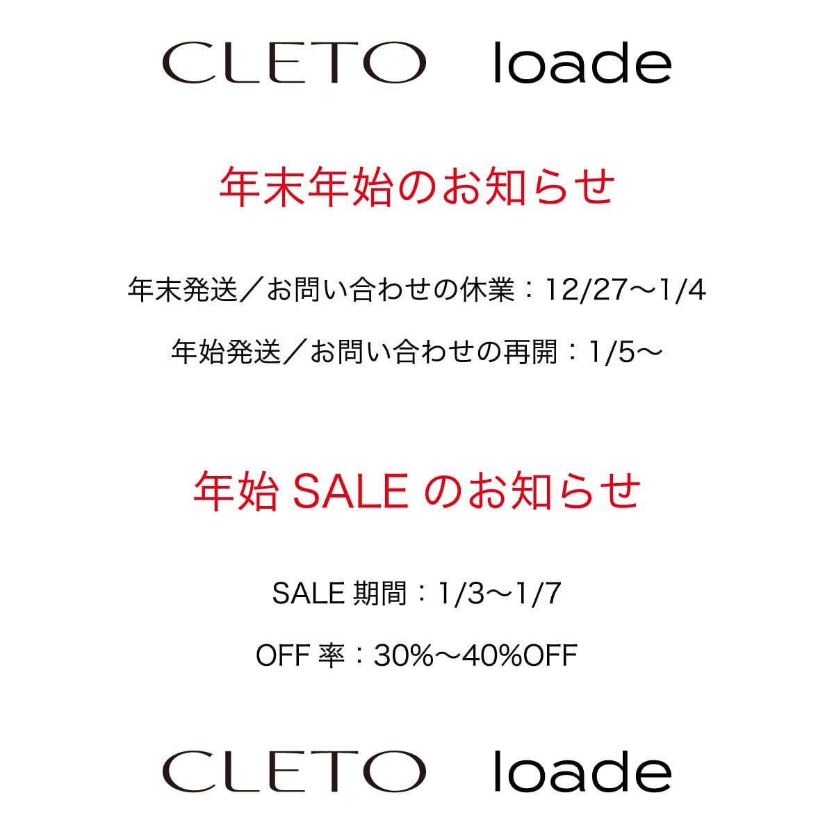 年末年始/SALEのお知らせ
